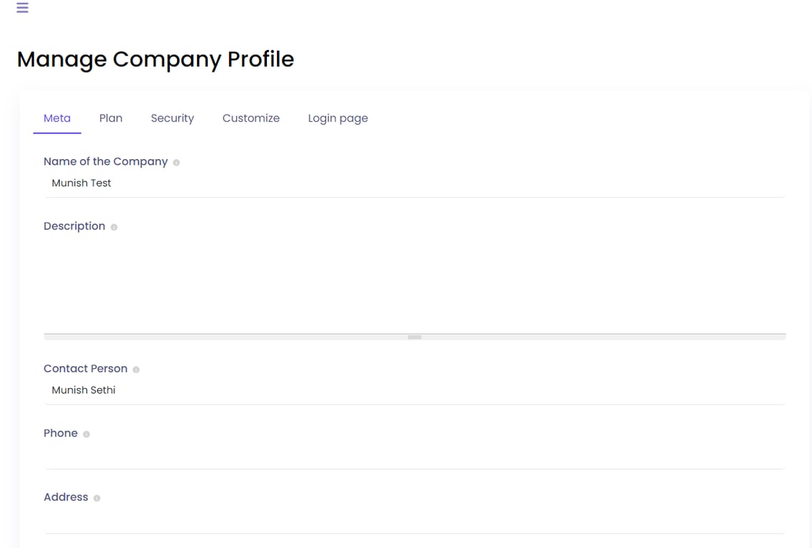 We can assign the limit of storage usage in this section. After consuming this limit, no more media can be uploaded for the company. Storage assigned to the company and storage used is also shown below the Storage size input field.
