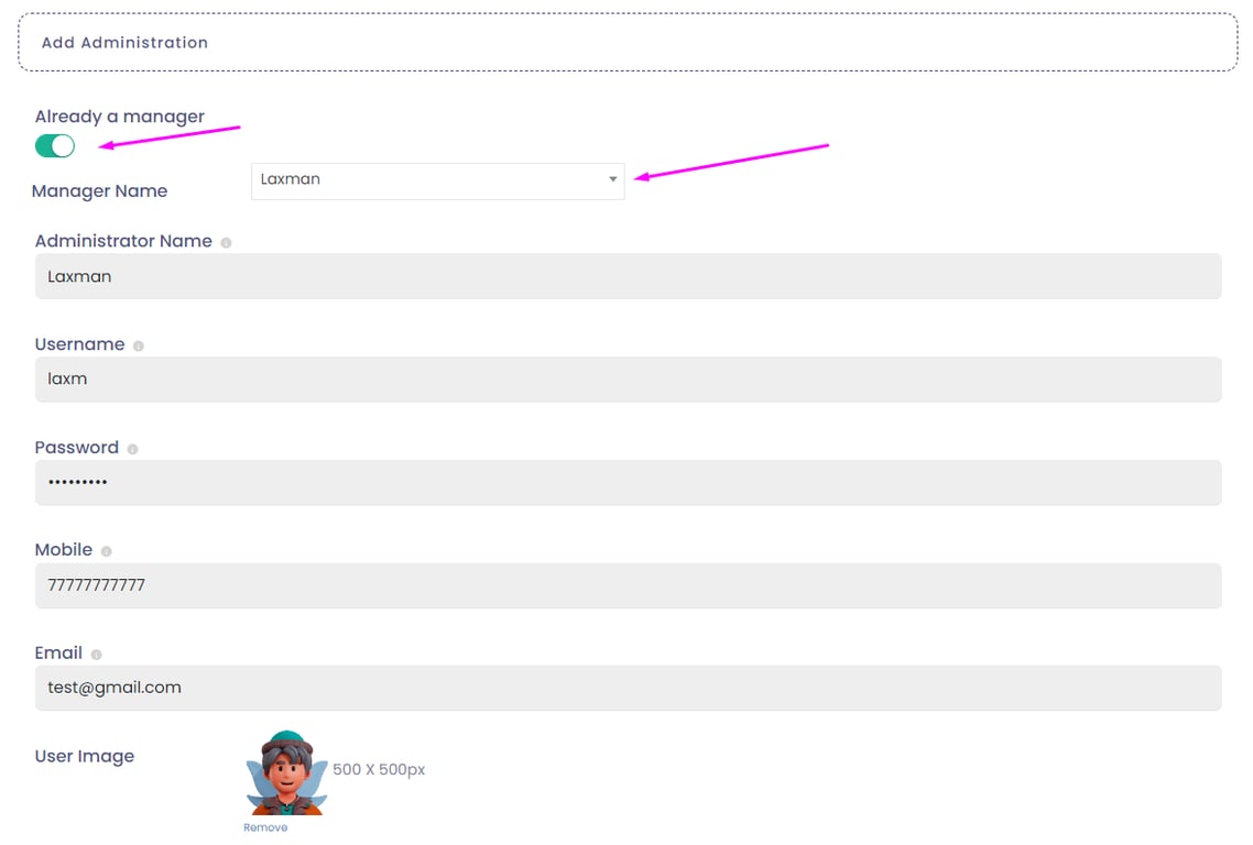 Now select the manager you want to assign to this new company. It will load all of the manager details in the below manager fields.