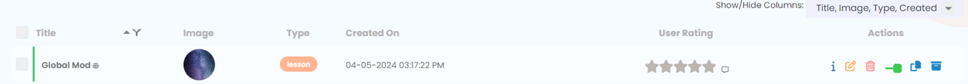 Once a Module is made global it will show up in your other companies module grid/card view with a globe icon next to it like this.