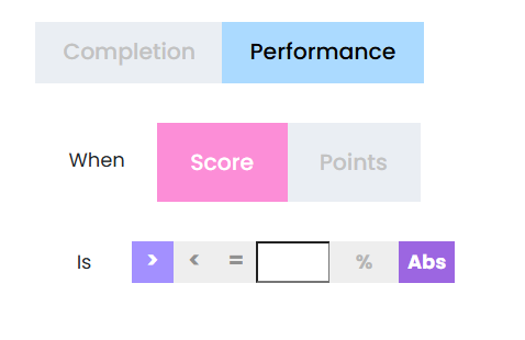 Or we can set it to Performance when we want the learner to achieve a certain score or points to get the Badge.