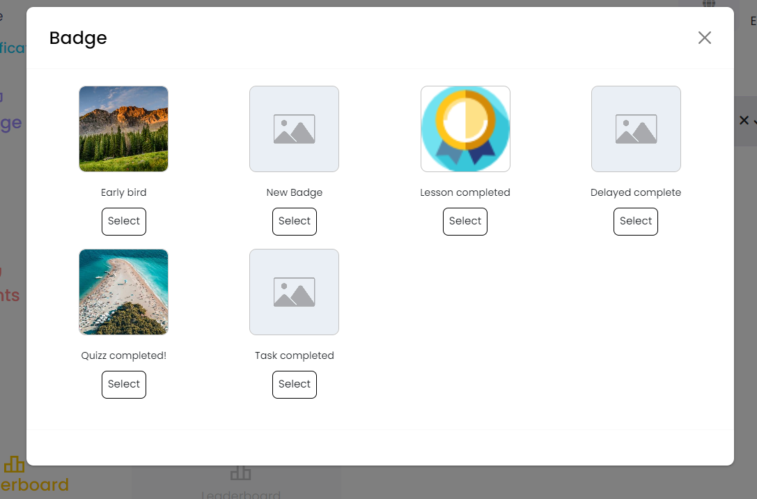 are depicted as images, you can assign badges either on Completion or on Performance of a learner in Learning or Module.