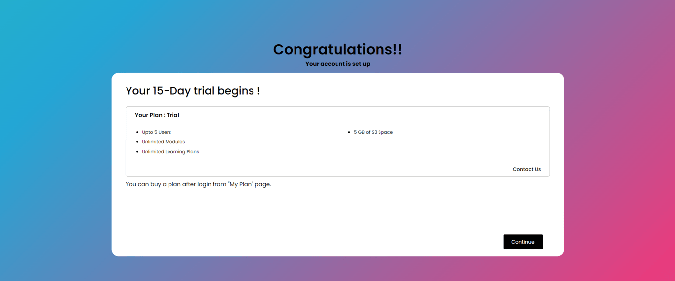 Then click on the Continue button. Then you will be redirected to the onboarding page.