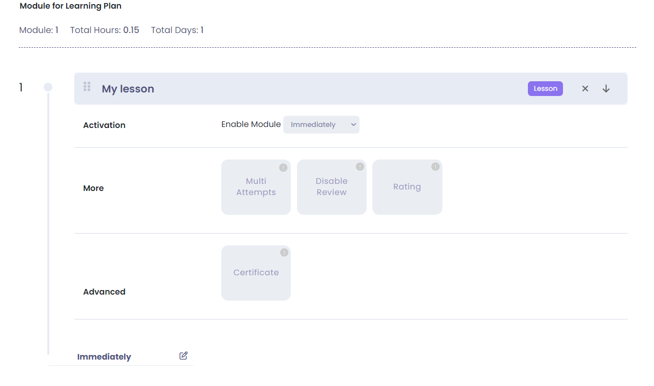 On Performance:You have the option to allocate points based on the total score a learner achieves across all modules of the learning plan.