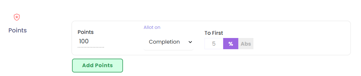 You can either choose to assign the points when the learner completes all the modules in the learning plan or you can choose to allocate points only to the first specific learner who completes the learning plan. E.g. To First 5 absolute users or 5% of total learners assigned in the learning plan.