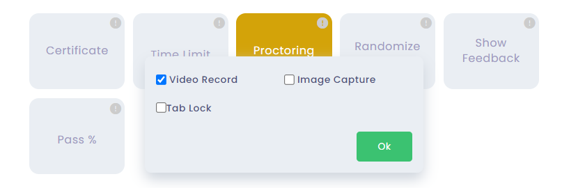 We can set up video recording which will capture short videos while the training is being attempted. You also have the option to capture images which will be captured at intervals. All the videos/images will be available in the reporting module, where you can check if there were any attempts of cheating.