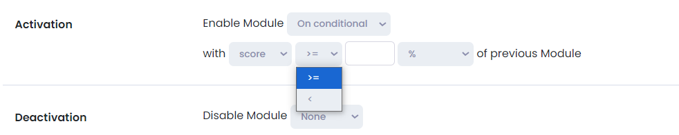 Score/Points are Greater than or equal to/Less than some percentage of the previous module.
