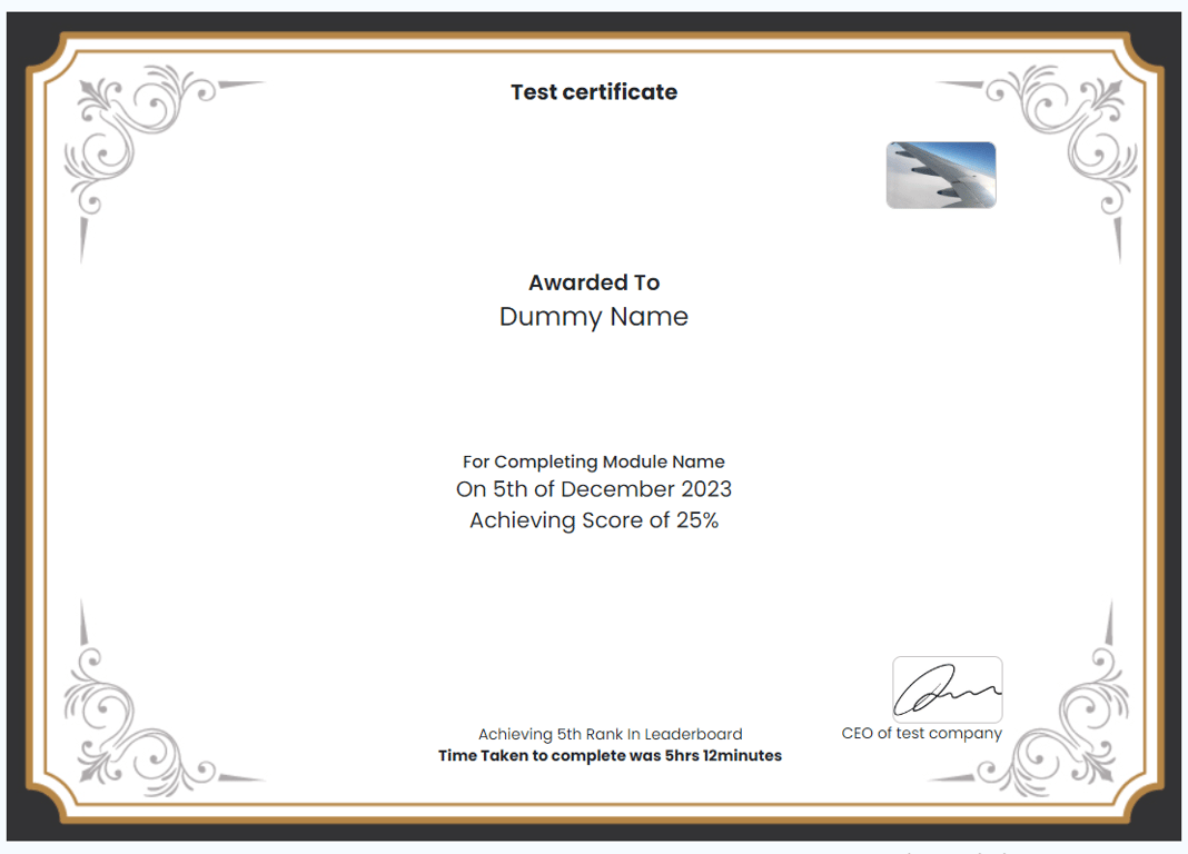 - Now you have successfully set a certificate for a module. When any user completes this module in this learning plan, they will be able to download their certificate with a unique QR code and their details about the module as you have set in the template.