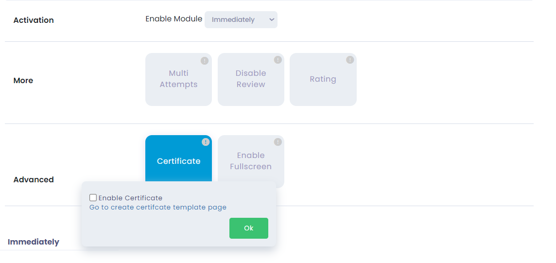 - Show Module name: Control whether you want to show the module name on the certificate.