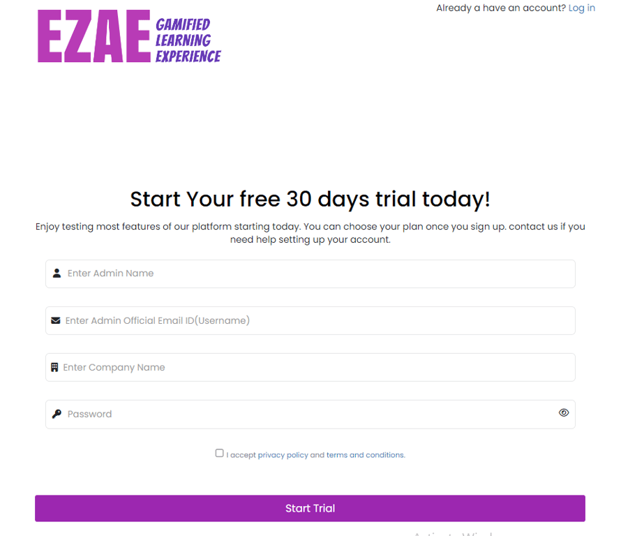 Then read out our Privacy Policy and Terms & Conditions and accept it to Start our free trial.